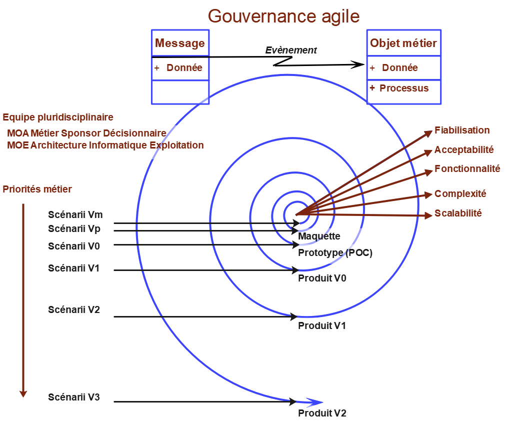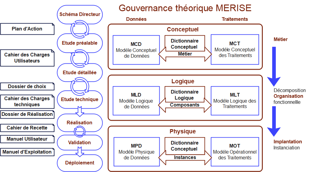 S’il est vrai que de nombreuses démarches et méthodes ont été élaborées ces 40 dernières années, il en résulte néanmoins une convergence partant de méthodes et de démarches globales structurées et cloisonnées (Merise à Merise objet) à des langages UML et BPMN et des gouvernances fractionnées, agiles et itératives (RAD Développement Rapide d’Applications, XP eXtreme Programming ou Scrum). Toutes ses Démarches et Méthodes convergent vers l’approche Objet et son Paradigme Objet, que ce soit au niveau des langages de modélisation et de programmation, mais aussi au niveau des architectures et infrastructures informatiques (UML, BPMN, Python, Java, Javascript, Node.js, JSON, Docker, Kafka, Elastic, mongoDB, Postgresql, Oracle, etc.).
